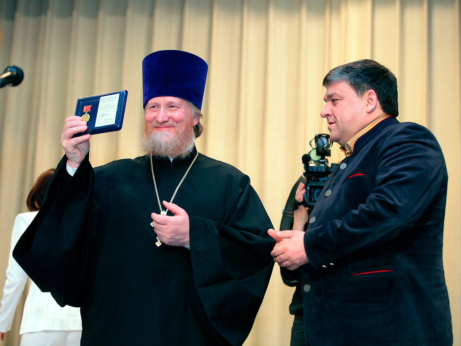Он поблагодарил Дмитрия Алексеевича Барченкова и его помощников за благие дела и вручил награды митрополита Крутицкого и Коломенского Ювеналия.