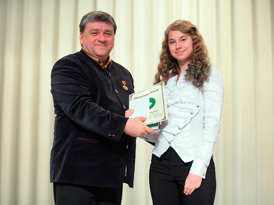 17 декабря в Культурном комплексе «Славия» прошла десятая юбилейная церемония вручения именной ежемесячной стипендии председателя холдинга «Щелковский» Дмитрия Алексеевича Барченкова ученикам общеобразовательных школ Щелковского района.