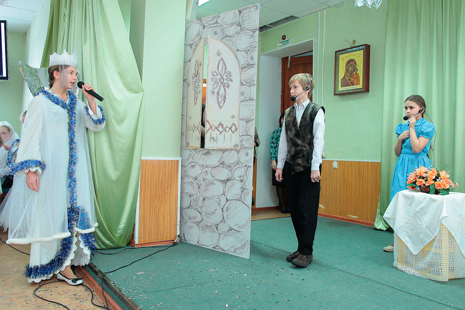 К празднику готовились задолго до Рождества. Театральному кружку гимназии (руководитель - Лыгина Анна Викторовна) предстояло показать православный спектакль по мотивам сказки «Снежная королева».