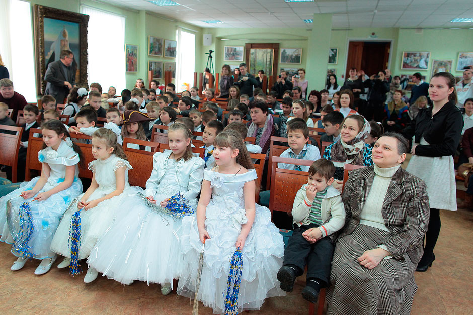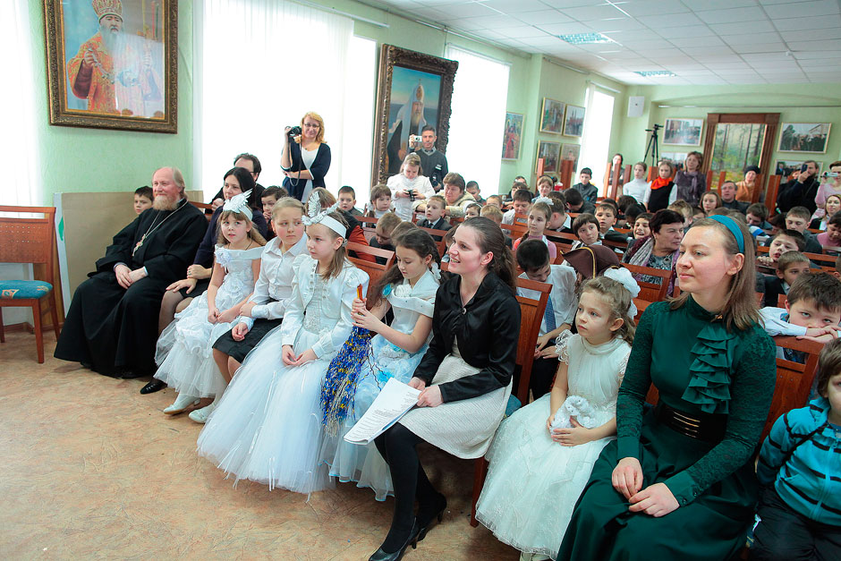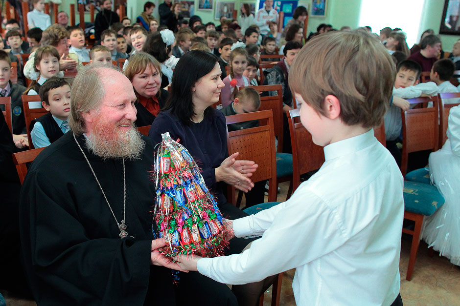 После спектакля протоиерей Андрей Ковальчук, благочинный церквей Щелковского округа, в поздравительной речи отметил старания юных артистов в восхвалении христианских добродетелей и благочестивого образа православного человека. В завершении праздника торжественным и радостным моментом для всех было вручение подарков батюшкой Андреем.