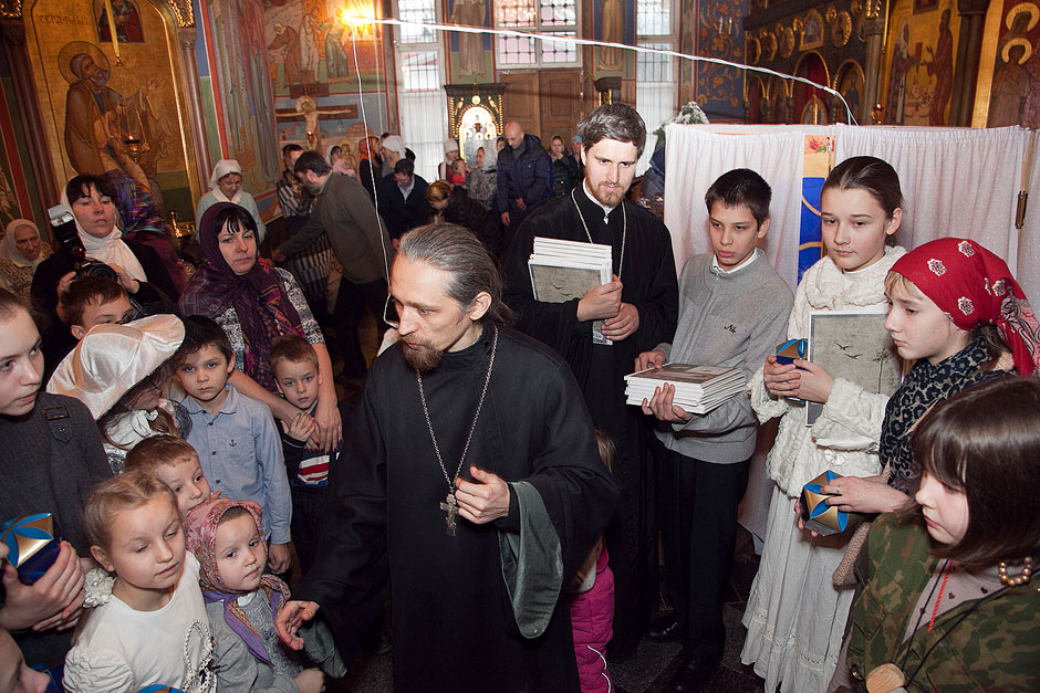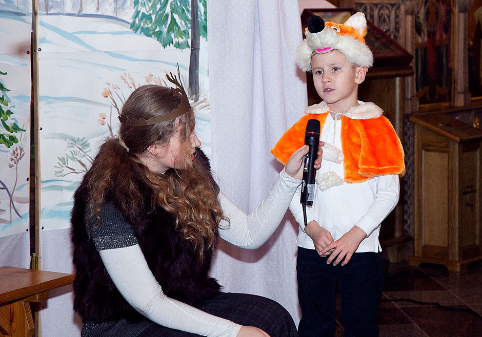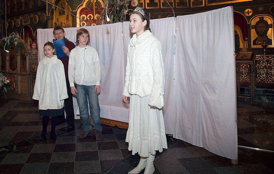 Первое отделение концерта – спектакль «Снежная Королева» по одноименной сказке Г.Х. Андерсена. В постановке приняли участие воспитанники и учителя Воскресной школы. Во втором отделении выступили два хора Воскресной школы. Третье отделение концерта, по доброй традиции нашего храма, – выступления зрителей: ребята пели песни, читали стихи. По завершении праздника все дети получили сувениры и книги.