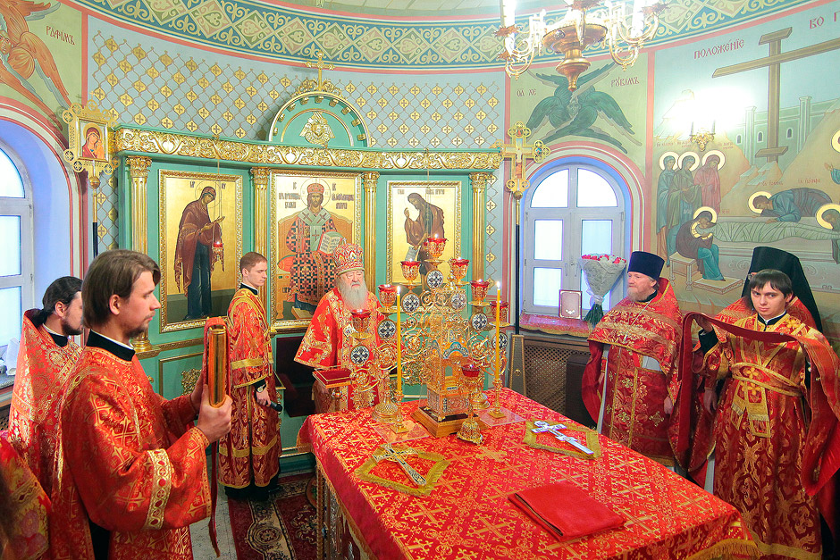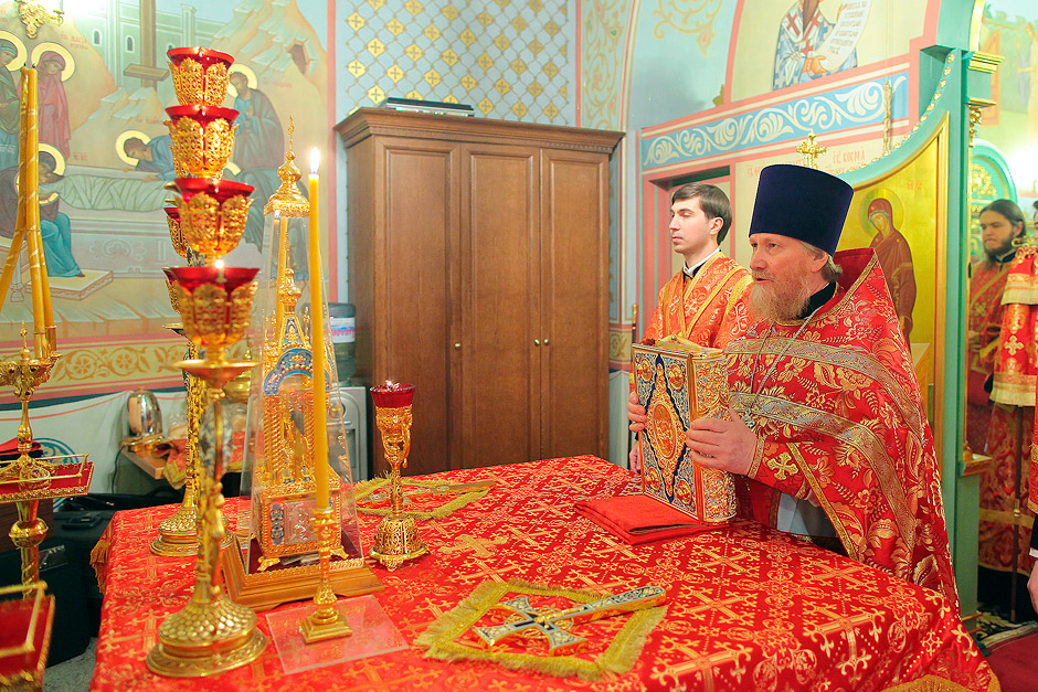В храме в честь иконы Божией Матери «Спорительница хлебов» Владыка Ювеналий совершил Божественную литургию в сослужении благочинного церквей Щелковского округа протоиерея Андрея Ковальчука, игумена Сергия (Куксова), настоятеля Вознесенской Давидовой пустыни, игумена Евмения (Лагутина), секретаря митрополита Крутицкого и Коломенского иеромонаха Николая (Летуновского) и клириков этого храма – настоятеля священника Александра Морокова и диакона Алексея Степанова. Вместе со священнослужителями молились сотрудники хлебозавода с директором Игорем Викторовичем Лариным.
