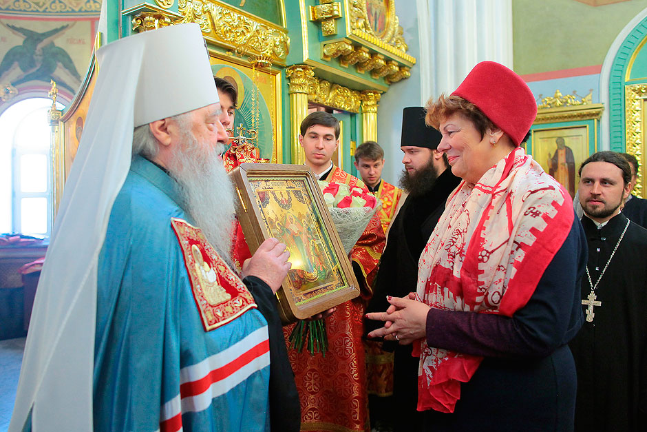 Главе городского поселения Щелково Татьяне Борисовне Ершовой в ее день тезоименитства Владыка преподнес икону Божией Матери «Всех скорбящих радость» и благословил ее на дальнейшие плодотворные труды во благо Щелковской земли. Начальник производства ЗАО «Щелковохлеб» Тамара Ивановна Жабина, стоявшая у истоков создания просфорного цеха, была награждена медалью Московской епархии «За жертвенные труды» III степени.