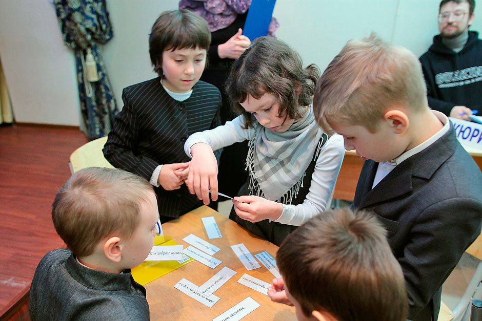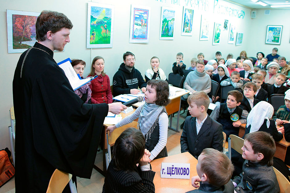 Вслед за представлением была долгожданная викторина по житию святого, к которой дети готовились за несколько недель. Пять команд немало потрудились, состязаясь в своих знаниях. Ребята волнительно старались первыми отвечать на вопросы, но главным было дружное участие и стремление запомнить события из жизни святого. Все участники получили подарки и книги о преподобном Сергии Радонежском.