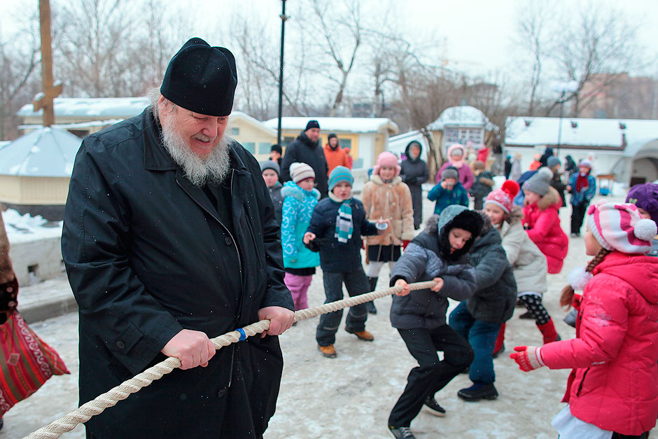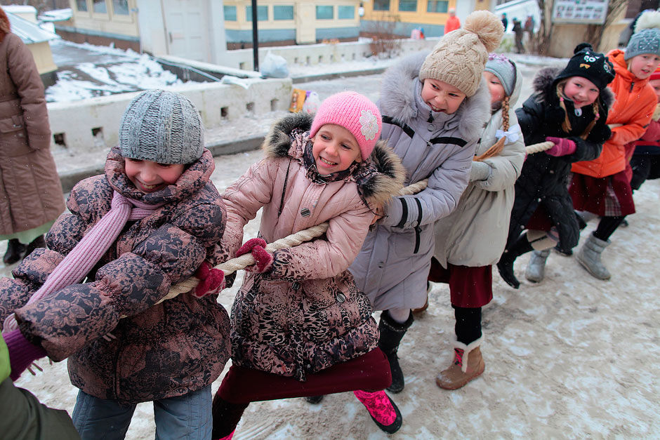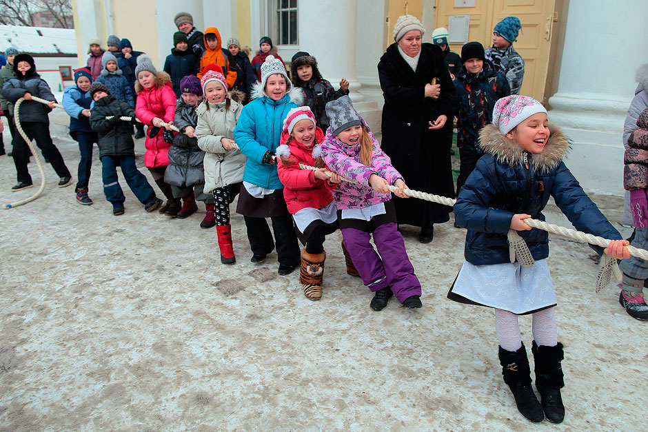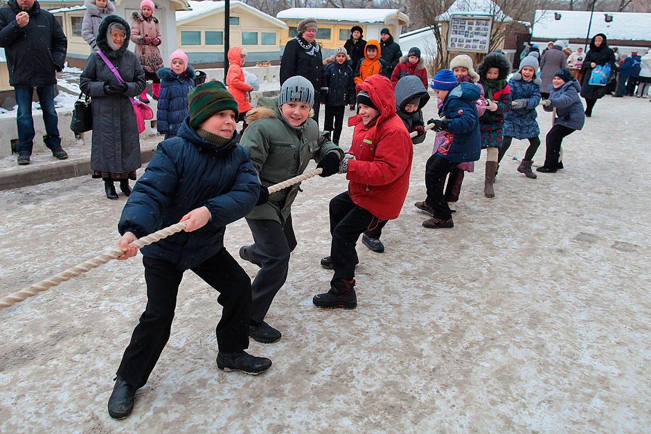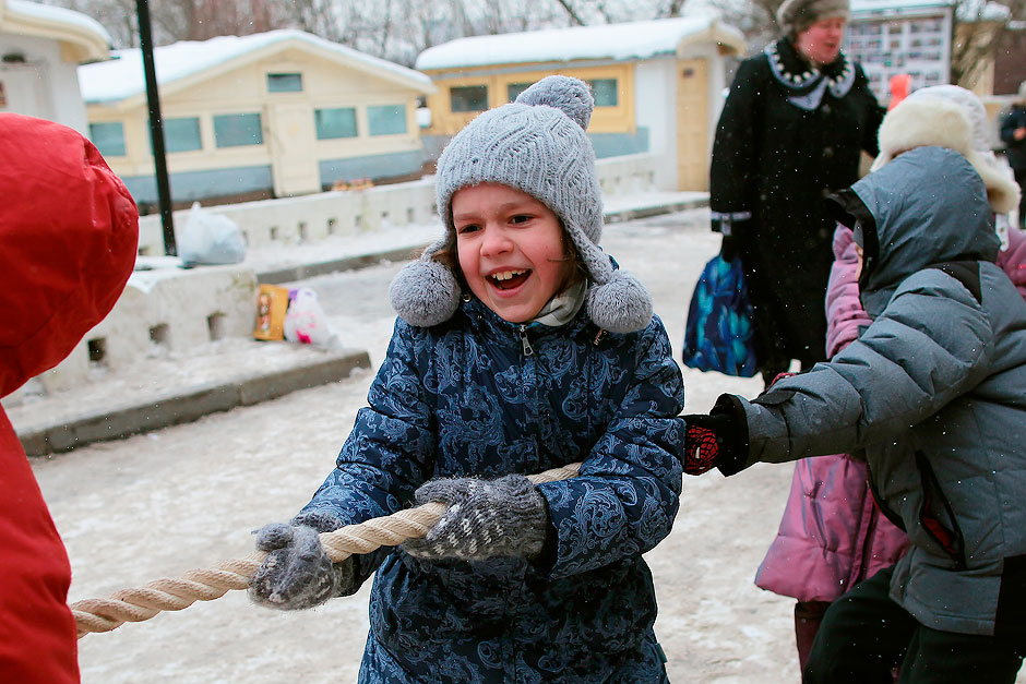 А на улице уже ожидали горячие пироги с чаем и соревнования по перетягиванию каната.